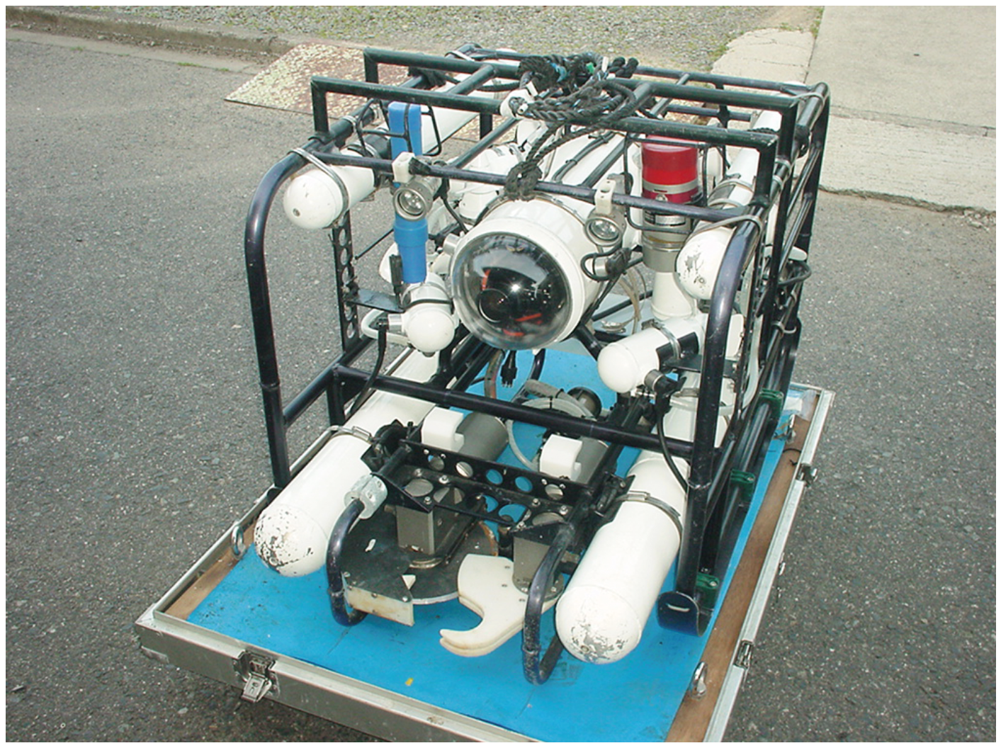 弊社は1952年に創業し大阪市に本社を構えています。一つの部門として人工魚礁の販売を手掛ける中で潜水士に代わり水中で集魚効果を確認する方法して、1985年に自社で水中ロボットを開発(図1)し、マリンシステム部として水中ロボット・水中機器のメーカーとして歩むことになりました。水中ロボットの開発水中ロボット製造販売していくなか、多様な水中機器の製造にも携わり幅広い海洋事業を展開して参りました。