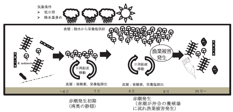 赤潮監視の自動化を検討するにあたり、先にタ―ゲットとなるカレニア赤潮の発生メカニズムと自動化する際のポイントについて記します。