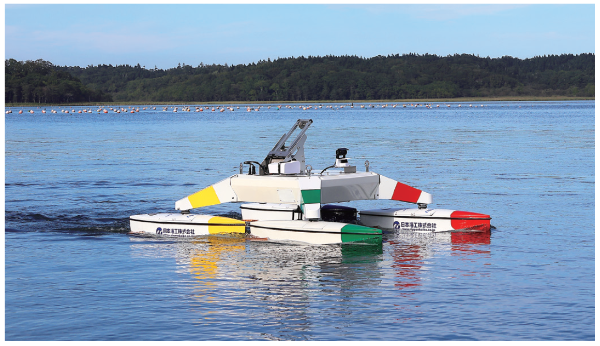 2016年から大阪府立大学(現:大阪公立大学)と共同研究を始めた「ロボセン」ですが、戦略的基盤技術高度化支援事業(サポイン事業:経済産業省:2020~2022年度)での付帯装備の高度化を経て、養殖場周辺海域での水質環境調査を行っています。また、ロボセン技術の多角的な活用として、ダム湖でのトライアル調査や港湾工事における濁度調査にも取り組んでいます(図4)。