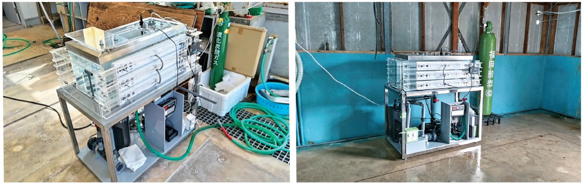 餌料藻類培養装置「ALGAE MAKER(アルジメーカー)」は、魚類や二枚貝類の種苗生産現場や、大学や水族館などの試験研究現場において、様々な微細藻類を高密度に培養するための装置として、弊社と東京海洋大学の共同研究によって開発されました。