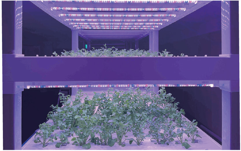 現在、海洋事業への直接の参入は行っていませんが、関連するところでは防衛省からの依頼で広島県呉市にある海上自衛隊呉基地にて、弊社サーフェスエンジニアリング部門の機能塗装課が護衛艦等の船体塗装を行っています。また、新規事業として広島市中区の自社オフィスビル内にてイタリア野菜の水耕栽培を行い(写真1)、同じビルの地下にあるグループ企業のイタリアンレストランへ提供(写真2)しています。この流れで現在は〝超〟スモールスタートではありますが、アクアポニックスにも着手しています。弊社は表面処理事業を行っている関係から大量の水を使用しています。私たちは産業や生命維持における重要性だけでなく、暮らしや人に与える水をめぐる環境の大切さ、淡水や海水などの水汚染の防止、生命多様性を維持する活動に大変関心を持っています。